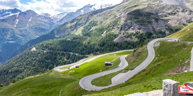 Gorska cesta Grossglockner je dolga 48 kilometrov, ima 36 serpentin in premaga preko 2.500 metrov višinske razlike.